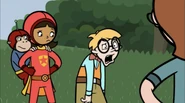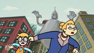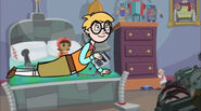 Another time when Tobey deduces the truth about Becky is in the episode "By Jove, You've Wrecked My Robot", in which he comes over to have a playdate with Becky and tells her that if she tries to turn into WordGirl, he will use his robots to destroy the city. Becky continues to deny being WordGirl, even after Tobey shows WordGirl some Polaroids of WordGirl with Becky's shoes on (due to a lapse in judgement by Captain Huggy Face) and states that they look exactly alike. Becky and Tobey play a parody of Battleship with toy robots connected to their gigantic counterparts in the city, and Becky eventually has to result to cheating through Walkie-Talkies with Huggy. Tobey does not appear to care when this is discovered, he knows that Becky is WordGirl because she hasn't yet attempted to defeat the robots. WordGirl sends Bob off to defeat the robots for her, using a WordGirl doll to fool Tobey's surveillance cameras. Tobey admits that Becky is not WordGirl, much to her relief.