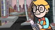 He and Scoops don't interact as much but he did call Scoops "Ace Reporter" in "Field Day Fun with Robo-Tobey". In the episode "Cherish is the Word" he and Scoops were showing their admiration of WordGirl but Victoria Best hypnotizes them and causes a fight. Scoops shows fear when Tobey challenges him to a duel to be WordGirl's Valentine, while somewhat fearful, Scoops was still willing to fight Tobey's robots himself despite the disadvantage. In "Talent Show Tobey" both of them were performing with WordGirl/Becky and made it to the finals, the two began to hit each other back in forth in a competitive way.