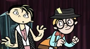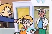 Tobey first interacted with Doctor Two Brains in the episode "Mousezilla", where both held respect for each other and their work. They both decided to combine both their talents and ingenuity together, collaborating on building a giant mechanical mouse robot, which both used to accomplish their goals (Two Brains' cheese heists, and Tobey's destructive plan to rule over the city). The robot was even strong enough that Wordgirl couldn't even put a dent in it (as it was made by Two Brain's alloy). Unfortunately, their relationship quickly soured when both started arguing on their motives of using the robot, each villain wanting to accomplish only their own goals (as mentioned above). They both started adding new features to the robot that neither one approved of, making their squabbling even worse. Finally things come to blows when both start making fun of each other's flaws, Tobey childishly mocking Dr. Two Brains' fear of cats, while Two Brains calls out Tobey's "silly schoolboy crush" on Wordgirl, much to Wordgirl's (and everybody else's) amusement. Their immature fighting allowed Wordgirl the edge to defeat Mousezilla, and lead to the arrest of both Two Brains and Tobey, leaving both villains humiliated and defeated. Their other notable interaction was Of Two Minds where Dr. Two-Brains was trying to convince WordGirl he was done with crime. He interrupted WordGirl and Tobey's fight by offering Tobey lots of money to send his robots to attack the doctor if he stole cheese again, while acting uninterested at first Tobey was in shock by the amount of money Two-Brains offered him. When WordGirl questions how that was supposed to convince her, Two-Brains is at a loss and leaves, making Tobey disappointed.