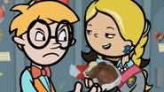 Tobey is also rather charismatic, though his charms fail to have any effect on WordGirl. Tobey is clearly bad and evil, but his motivations for being so are not villainous. Most of the villains on the series attempt to steal money, food, or other valuable items. Tobey, on the other hand, has an obsessive crush on WordGirl --though he would never admit this to anyone and has argued more than once to the contrary-- and often concocts funny and destructive plans simply to impress her or win her heart. He often demands that if he can defeat her with his robots, she must tell him her secret identity and go out for ice cream with him. Tobey owns a WordGirl scrapbook with newspaper clippings and other objects, as well as a WordGirl doll that lies on his bed. Though he and WordGirl frequently argue, they occasionally show they do actually have a great deal in common together, such as in the episodes "Department Store Tobey", "Have You Seen the Remote?", and in the episode "Tobey Goes Good". Unfortunately, Tobey gets out of hand after losing to Violet to the point that that he almost squeezes WordGirl using his robot when she tries to stop him. As for WordGirl's dual identity, Becky Botsford, the two are rivals at school as they both compete to prove who is better whether it's sports, art or winning an election. Although in some episodes the two show respect for each other. In Season 3, when Victoria Best came to school he and Becky both found a rival in her, although in Kid Math and The Tooth Hurts, he and Victoria are shown together, suggesting they have some form of friendship. It's also hinted that Tobey has a similar crush on Becky, complimenting her appearance[1], but hides it more fiercely than his crush on WordGirl. However in "Tobey's Playground Calamity" and "Guess Who's Coming to Thanksgiving Dinner" he and Becky make it clear they do not want to be together.
